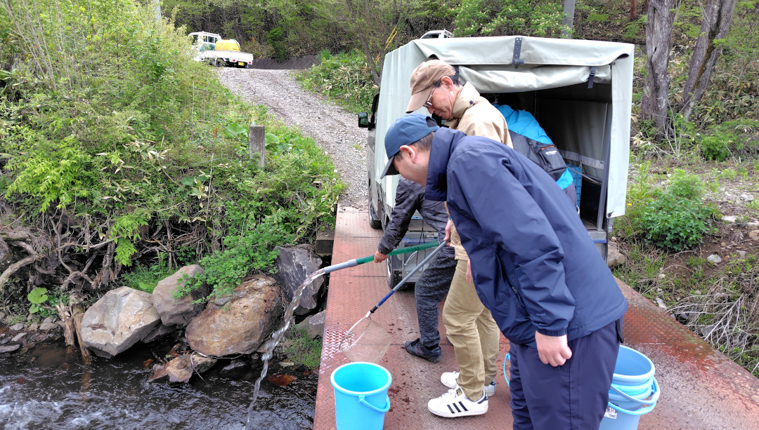 訪問内容は岩手大学農学部で雫石川東部(河畔林)にて、ツキノワグマの生息地利用の解析の為、滝太橋上流に監視カメラの設置してるのを知り、組合としてどれだけ出没してるのか把握したく訪問した。