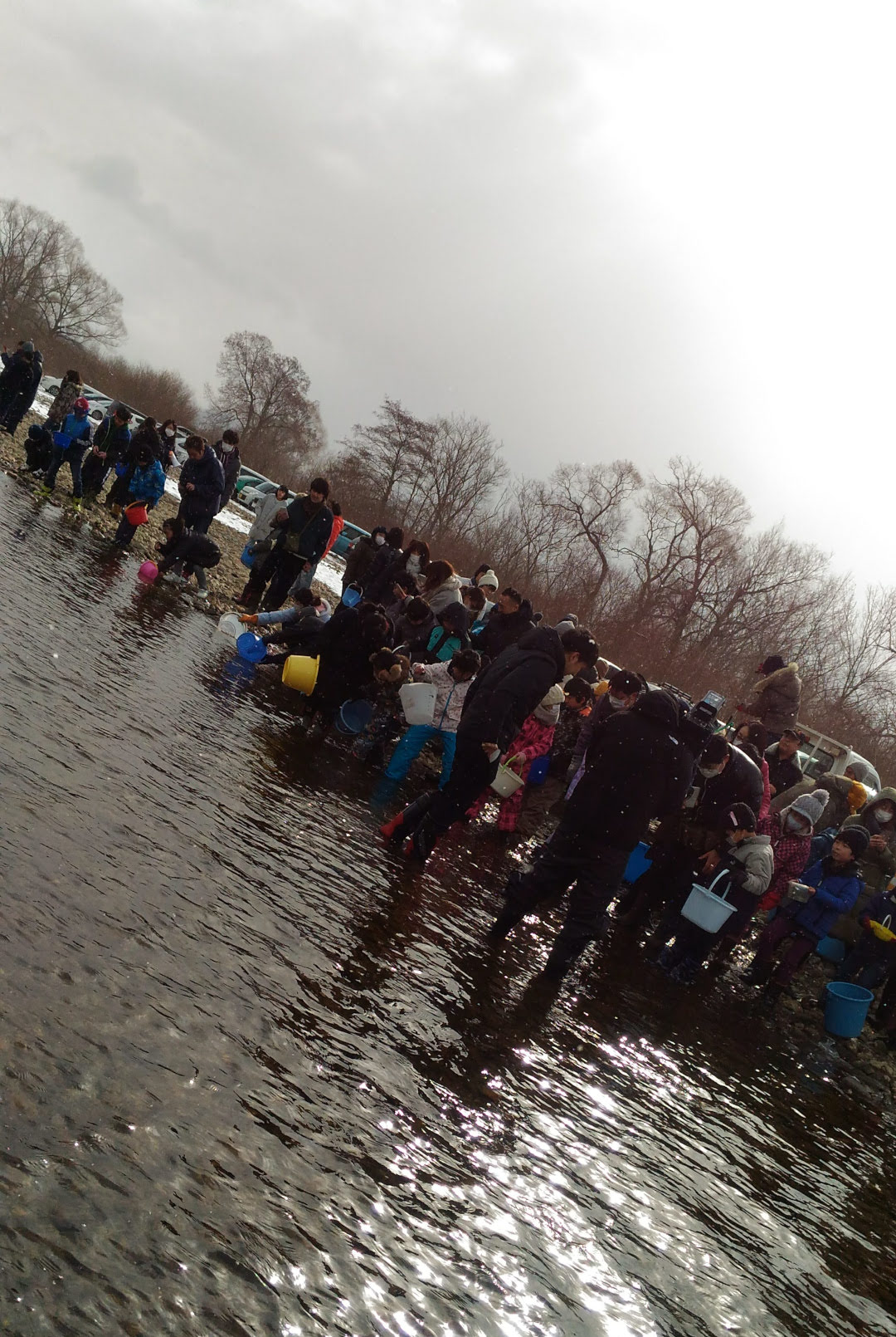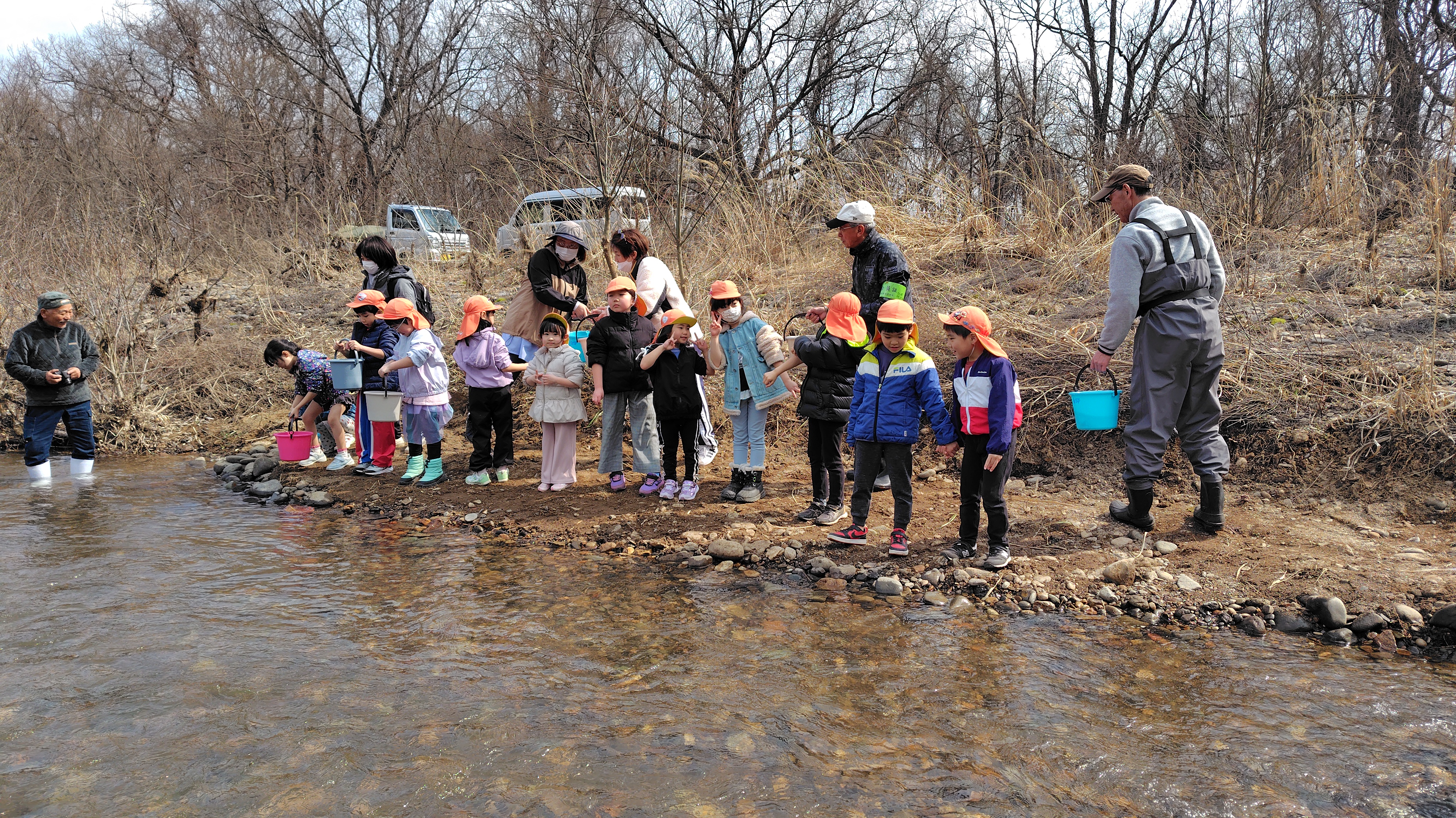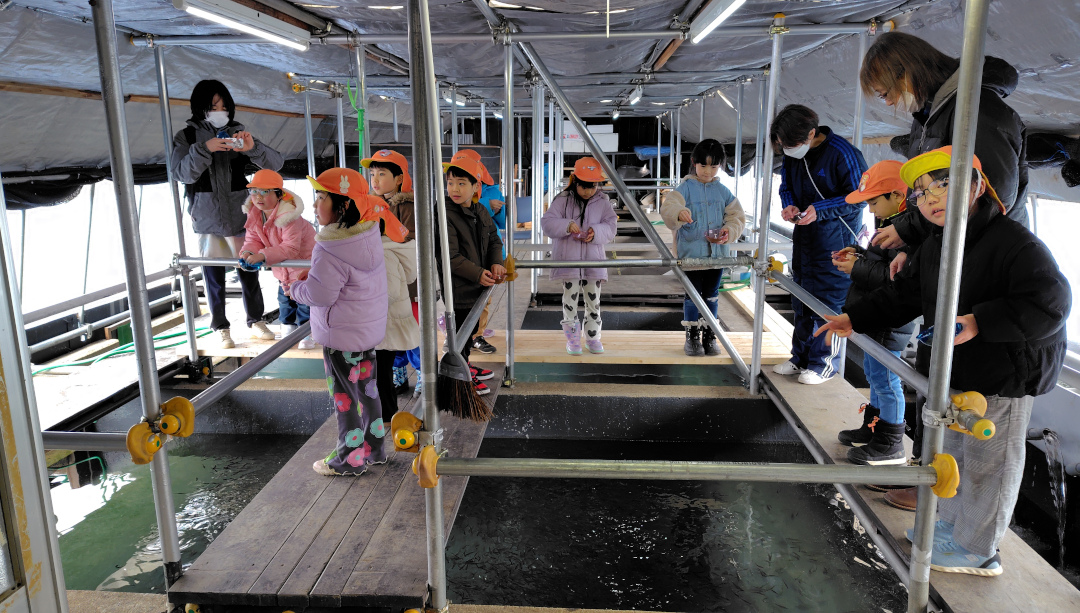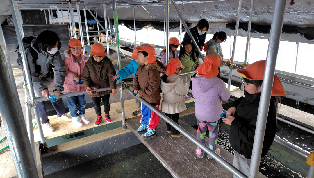 浮上が進めば近所の太田保育園が餌やりのお手伝いに来てくれます。