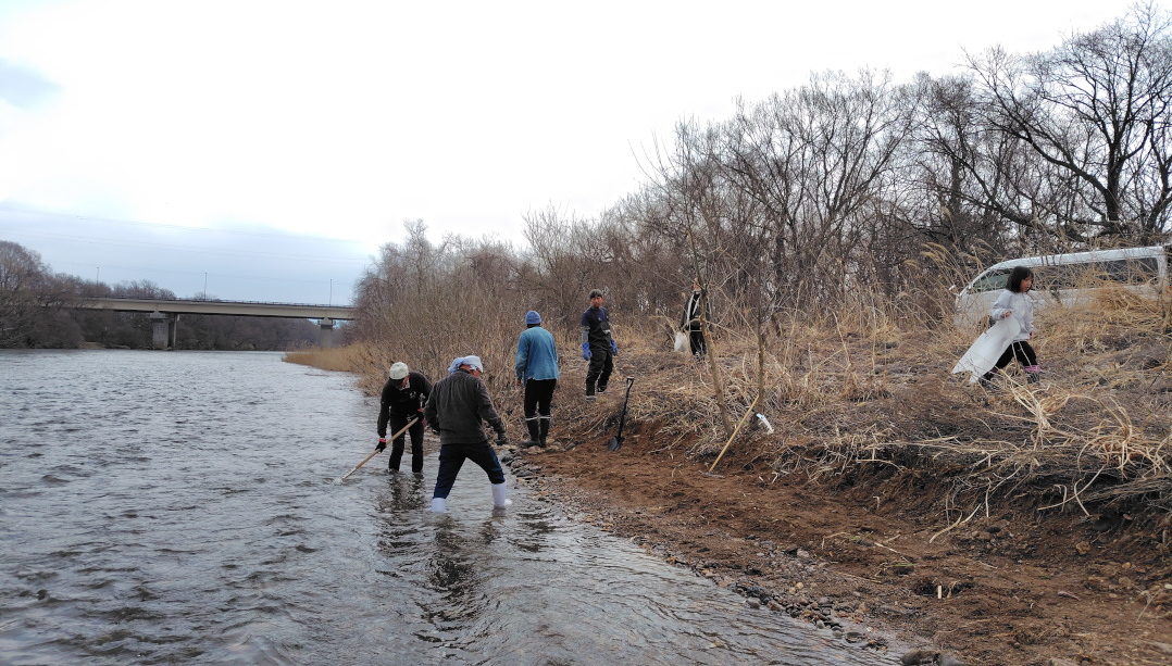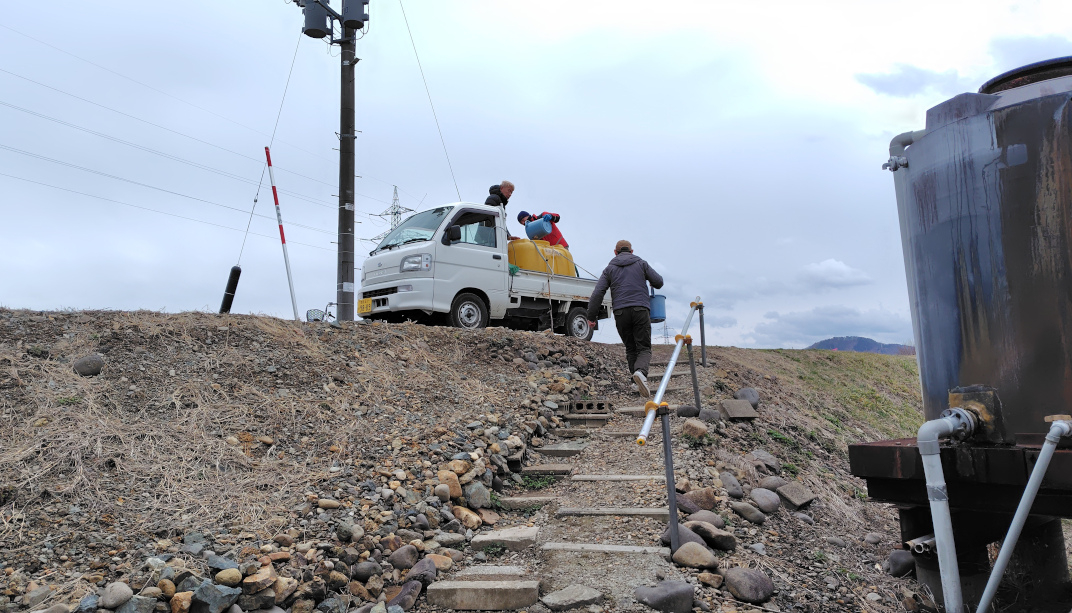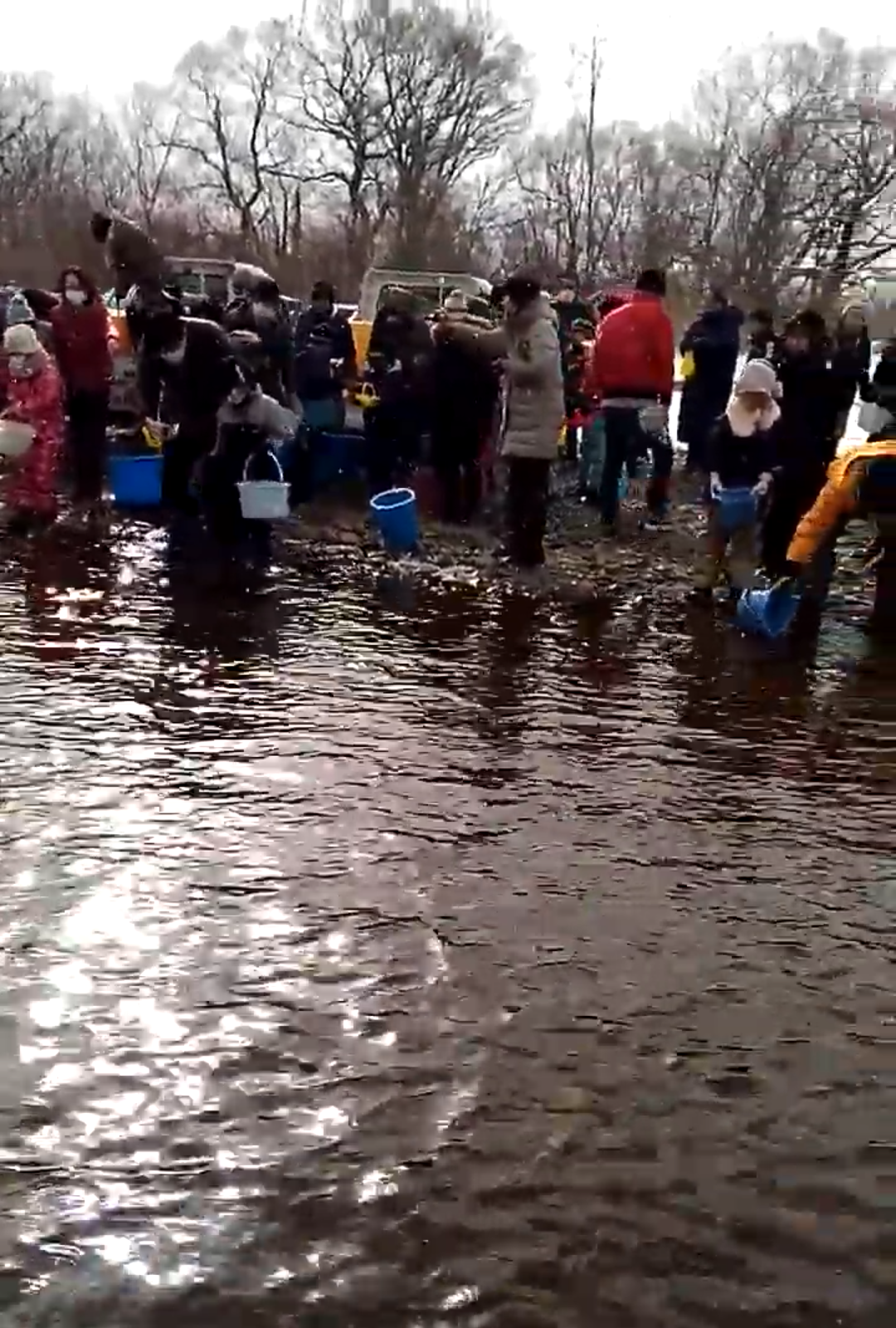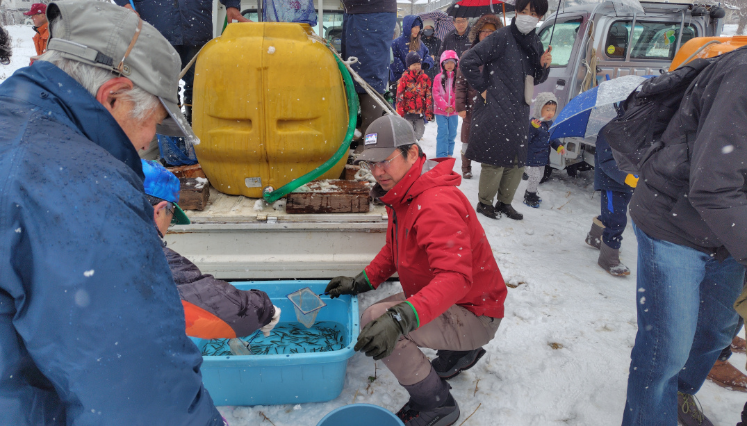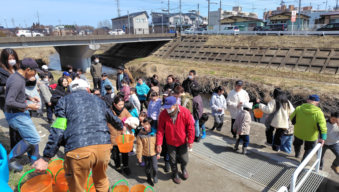 浮上が進めば近所の太田保育園が餌やりのお手伝いに来てくれます。